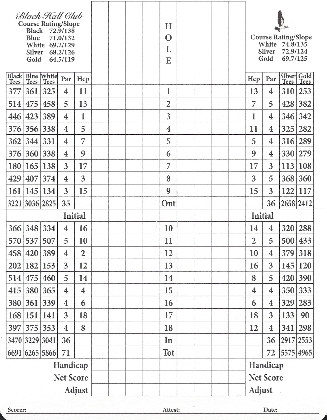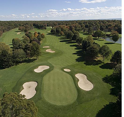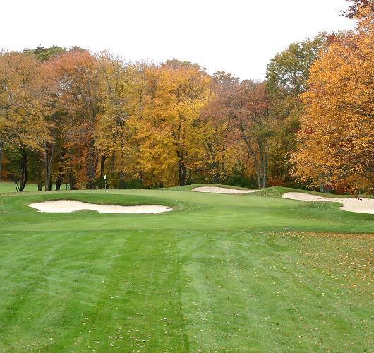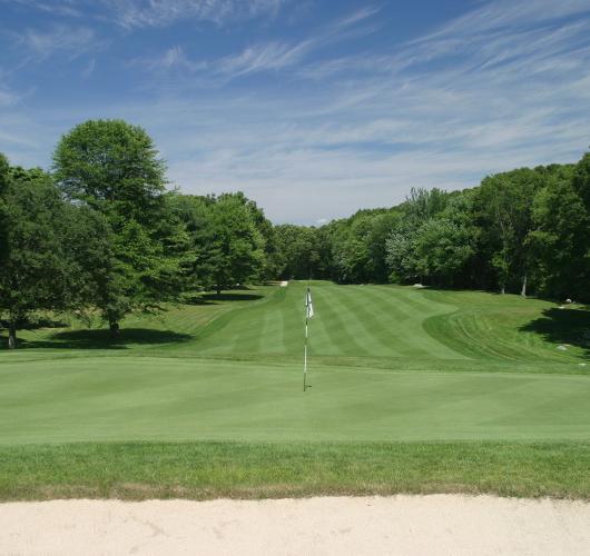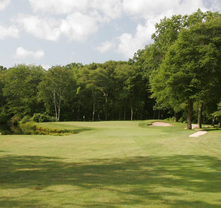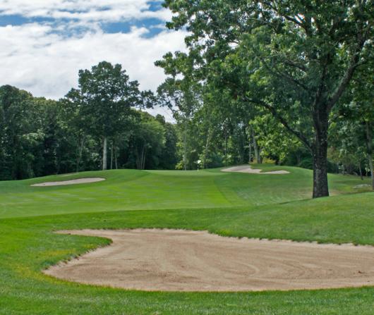 The opening par four at Black Hall requires a well placed tee shot, preferably to the right center of the fairway. This will leave the best angle to the green, which is well bunkered left and right and protected by a large tree about 50 yards in front of the green on the left. The front portion of the green is severely sloped and will collect anything with too much spin.